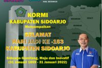 Tanggal 31 Januari menjadi hari istimewa bagi Kabupaten Sidoarjo. Di tanggal ini Kabupaten Sidoarjo merayakan hari jadinya. Tahun ini, memasuki usia ke-163 tahun. KORMI…